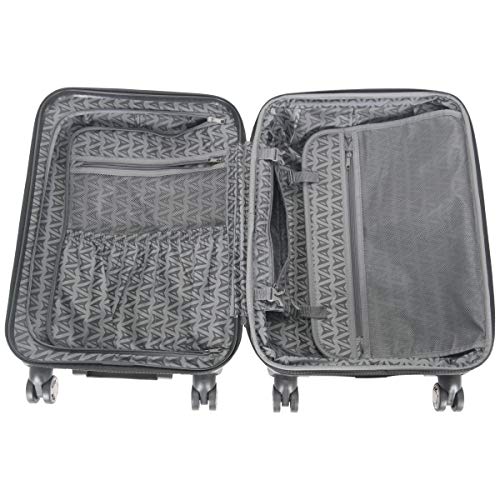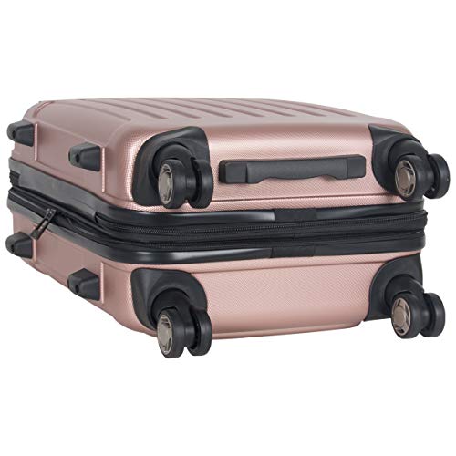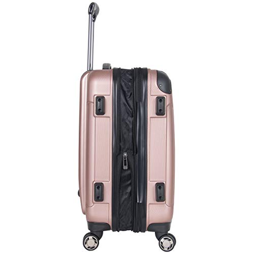 Details: Expands an additional 2.0 inches for greater carrying capacity Multi-directional 8-wheel spinners allow smooth, 360 degree movement over any rough surface for complete mobility free-weight rolling, relieving any pressure from your arms while on the move Lightweight construction helps you adhere to airline weight restrictions to avoid unneeded airport fees Durable ABS hard-shell exterior body material with fully lined interior Molded corner guard reinforcements for absorbing and deflecting shock for maximum impact resistance Self-repairing coil zippers for long-lasting use main compartment features expansion zipper and garment Restraints with zipper pockets for small items Under the lid unzips for greater carrying capacity and includes accessory pockets and open-top shoe pockets Fully lined interior Main compartment features a zipper accessory pocket and garment restraint straps to hold your clothes and contents in place Front lid features a large u-shaped zipper pocket allowing for double sided packing Convenient flexible top and side grab handles and molded bottom grab handle allows for easier lifting and maneuvering Molded side feet allow luggage to stand upright on its side Sturdy locking retractable push-button telescopic trolley handle extends to be 41 inches tall, conductive for simple one-handed use Meets most yours. Based airline carry-on size requirements and fits into most airline overhead bin compartments overall Dimensions: 22" H x 17" W x 10.0" - 12.0" D Weight: 7.45 lbs.
