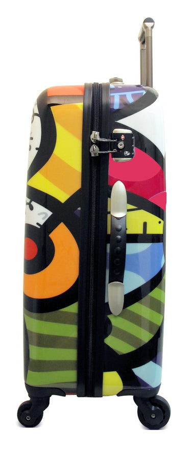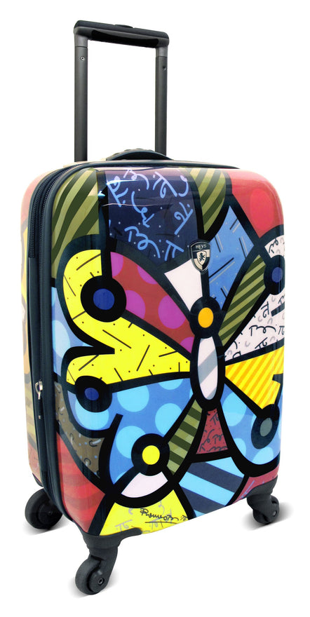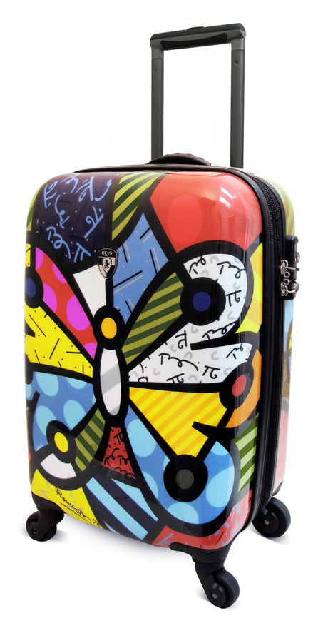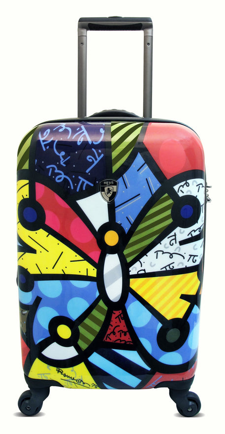 Details: Travel in style with the britto by heys usa butterfly carry-on spinner. The shell is made of a polycarbonate composite, and is protected by a layer of clear coat paint that gives it a high gloss luster. Modern aluminum telescopic handle system, with push-down locking for easy, single-hand use, and cushioned tpr grip for comfort. “smart wheels” are larger in the rear for greater control and smooth movement. Britto collection has a fully lined interior customized to compliment the shell art, clear-view multi-use organizational pocket for ease of packing that also doubles as a divider, keeping your items secured. Built in travel sentry tsa accepted 3-digit lock allows baggage screeners to open your luggage for inspection, and relock for your security. 7 year worldwide “better life” warranty.