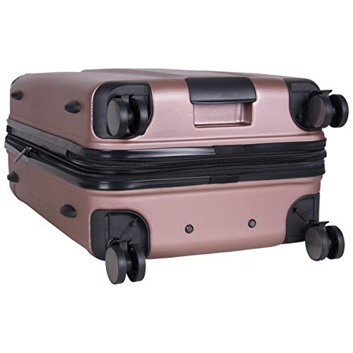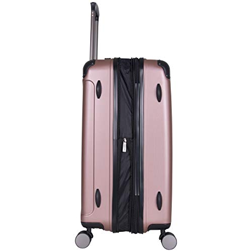 Details: Expands for greater carrying capacity. 8-Wheel Spinners allow smooth 360-degree rotation. Lightweight Construction. Durable hard side exterior and molded corner guard reinforcement for maximum impact resistance and Fully lined interior. Lid section features a large u-shaped zippered pocket which includes A mesh zipper pocket and elastic shoe pockets. Main compartment includes a full-length zipper pocket, garment restraint panel with snap locks, and a large mesh zipper pocket. Molded feet allow uprights to stand on its side. Durable molded bottom grab handle and flexible top and side handles allow for easy lifting. Locking retractable trolley handle. Overall Dimensions: 26.75"H x 17.9" W x 10.5-12.5" D; Weight: 9.0 lbs. Includes a 10-year Limited manufacture warranty.