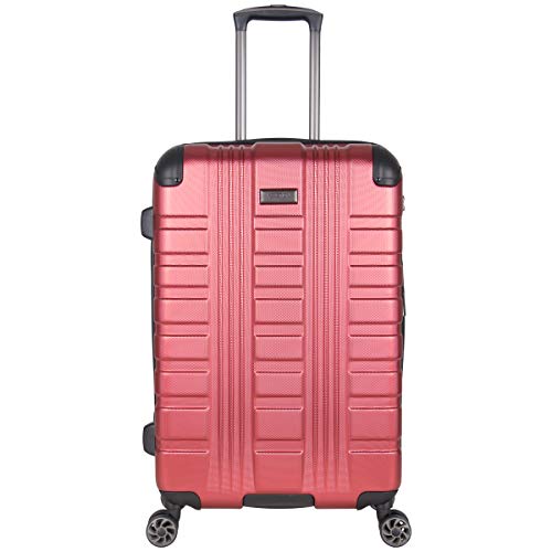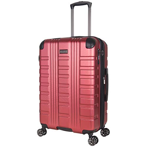 Details: 8-Wheel spinners provides effortless 360 degree navigation allowing you to get to where you're going faster. Built in TSA lock is an approved keyless combination lock that keeps your items secure and allows only TSA agents to open and inspect your bag. Lightweight construction helps you meet airline weight restrictions, to avoid unnecessary airport fees. Expands an additional 2.0" for greater carrying capacity. Recyclable pet exterior is lightweight and practically indestructible. Molded corner guard reinforcements for absorbing and deflecting shock for maximum impact resistance. Self-repairing coil zippers meant for long-lasting use. Flexible top and bottom grab handles allow for easier lifting and maneuvering. Front lid features a large u-shaped zipper pocket allowing for double sided packing. Expandable main compartment interior features a large u-shaped, ventilated, mesh zipper pocket. Under-the-lid section features a large u-shaped zipper pocket and a full length ventilated, mesh zipper pocket. Retractable trolley handle retracts to be 41" tall with a locking push button mechanism. Molded side feet allow luggage to stand upright on its side. Overall Dimensions: 26.5" h x 18.0" L x 10.5"-12.5" D (includes wheels), weight: 8.65 lbs, 10 year limited warranty.