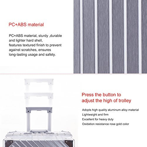 - Material:Luggage shell adopts anti-strike,impact-resistant,wear resistant,scratch resistant surface waterproof material.Add to it with good tenacity,lightweight,sturdy,difficult to deform;Strong,hard to bend aluminum frame replacing zipper to prevent the suitcase from damage when suffering heavy weight.