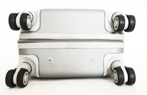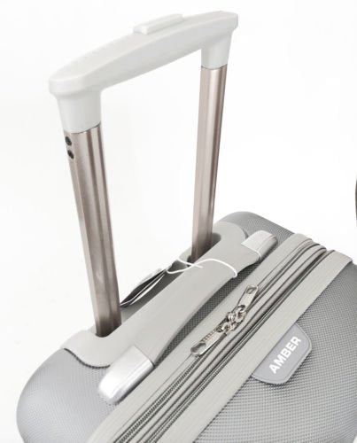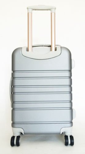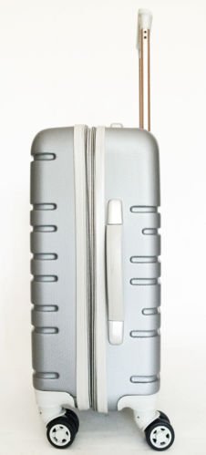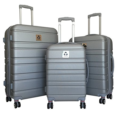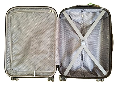 Details: All 3 luggage pieces are same in aesthetics but differ in sizes. ABS material gives outer shell rigidity. High quality aluminous handle system expands with push button. 2 padded handles on top and side. 4 spinner 360 degree wheels. Inside compartment has gray lining along with 2 straps. Inside has flap that zips close to separate the compartment into 2 areas. 2 smaller cases fit into the largest one.. Please note: there is a logo on the front