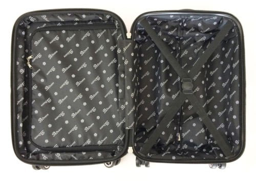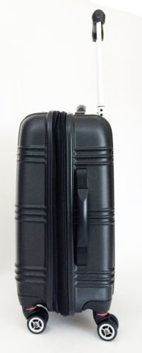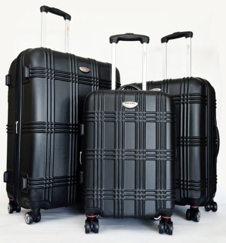 Details: All 3 luggage pieces are same in aesthetics but differ in sizes. ABS material gives outer shell rigidity. High quality aluminous handle system expands with push button. Soft rubberized padded handles on top and side. Ultra smooth 4 spinner 360 degree wheels. Inside compartment has dark gray lining along with 2 straps. Inside has zipper flap that can be used to separate the main compartment into 2 areas. The main compartment can be locked (locks not included). 2 smaller cases fit into the largest one.