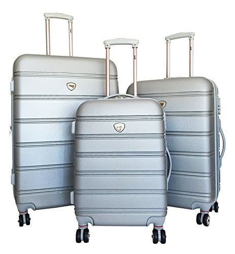 Details: All 3 luggage pieces are same in aesthetics but differ in sizes. ABS material gives outer shell rigidity. High quality aluminium handle system expands with push button. 2 handles on top and side. 4 twin spinner 360 degree wheels. Inside compartment has gray lining, 2 elastic straps, and toiletry pouch. Inside flap zips closed and is used to separate the main compartment into 2 areas. 2 options in locking: Built in combination lock and zippers can be locked together with a personal lock. 2 smaller cases fit into the largest one. High quality construction.