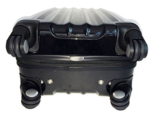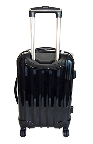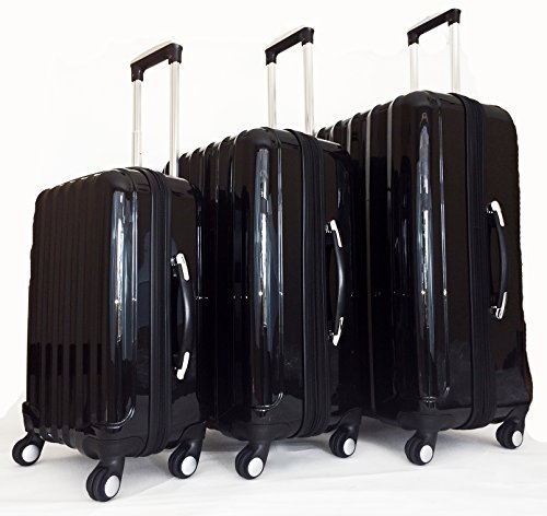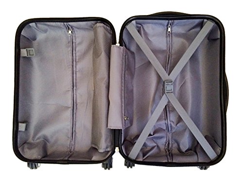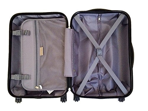 Details: All 3 luggage pieces are same in aesthetics and features but vary in size. ABS material gives outer shell rigidity / polycarbonate allows shell to absorb impact by flexing when under heavy pressure. High quality aluminum telescoping handle system expands with push button 2 padded handles on top and side. 4 spinner 360 degree wheels. Inside compartment has gray lining along with 2 straps. Inside has netted pocket which latches on to the other side of the case and can be used to separate the main compartment into 2 areas. The main compartment can be locked (locks not included). 2 smaller cases fit into the largest one. 5 year limited warranty.