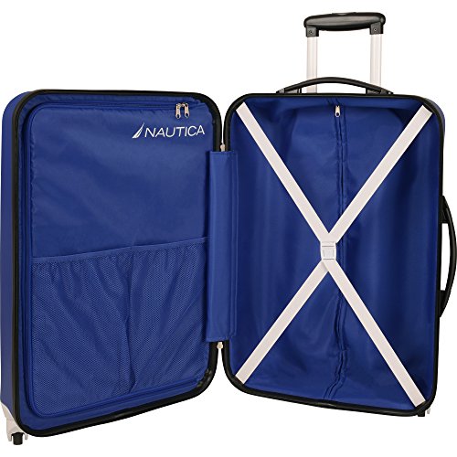 Details: Ribbed, diamond texture ABS hardside shell Four wheel spinner system for easy maneuverability Push button locking trolley handle Fully lined interior with a zippered curtain, two mesh zipper pockets and adjustable shoulder straps Interlocking main zipper pulls 5 year warranty Dimensions: 24.75" x 17" x 9.5" - 8.7 LBS