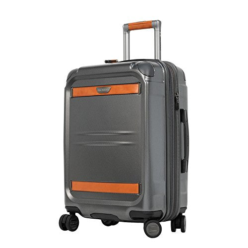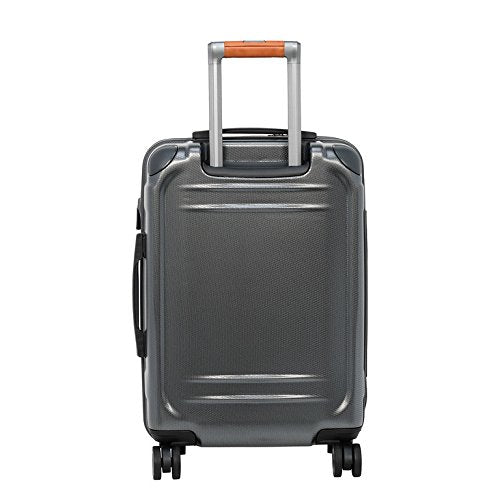 - The 21-inch has 100% virgin polycarbonate outer shell made from Makrolon by Covestro offers lasting durability; protective corner guards at high stress points protect against impact. The internal frame assembly delivers resilient structure at a light weight. Contrasting leather-look accents add rich detail. Multi-stage retractable handle with ergonomic grip promotes maneuverability.