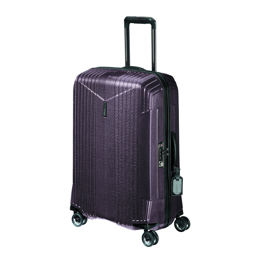 - Lightweight, scratch and impact-resistant, metalized Curv material. Exceptionally resilient, dual tube aluminum pull handle with leather grip.