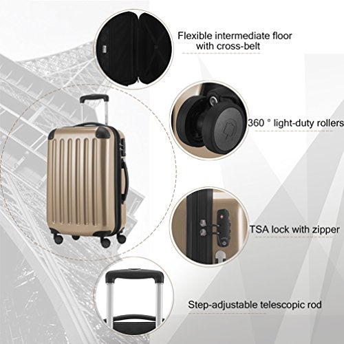 - Material: ABS + Polycarbonate / Hard-Side Glossy,is different with other suitcase .after prefessional team's research,made with top synthesis thehnology,all these make our products more durable,more firm and more glossy.