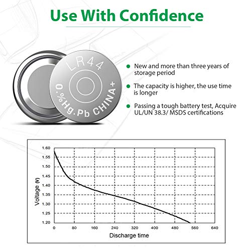 - ★High Quality: Tested under Strict Quality Control Standards. CE and ROHS Certified. Grade A cells LR44 Ensure Longer Battery Life and Long Lasting Power