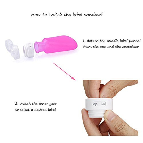 - Easy Content Identification: transculent to see what's inside and how much left; a label window with options of Shamp.,Soap, Lotion, Cond.,Sun, and also one blank space for you to mark it yourself.