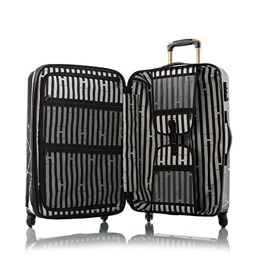 Details: Be a fashionable globetrotter with the Heys new Fashion SpinnersTM with print designs that reflect the latest runway trends. This sophisticated new style is the next generation of Heys popular 'Fashion SpinnersTM' luggage - it's been completely redesigned from the ground up with all-new features! Features black and white marble inspired print Rose Gold coloured accents 360° spinner wheels allow for effortless motion in different terrains Made from polycarbonate composite; a lightweight, durable and impact-resistant material used in the making of bulletproof glass Zipper-released expansion system allows for an extra 20% in packing capacity Fully lined interior with a stylish patterned fabric, with multiple zippered pockets Protected by a layer of clear coat, giving the surface a beautiful glossy shine Gel cushioned top and side handles