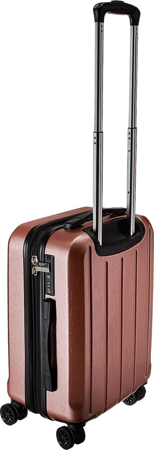 - Features a fully-lined interior with zippered divider, buckled compression straps, and zippered pockets. Flush mounted built-in TSA combination lock. Zipper-released expansion system allows for an extra 20% in packing capacity. Gel-cushioned top and side handle. Lightweight aluminum push-button telescopic handle system with multi-stage locking heights. 360º spinner wheels allow for effortless motion in different terrains. Imported. Measurements: Width: 14 in Depth: 8 in Heig