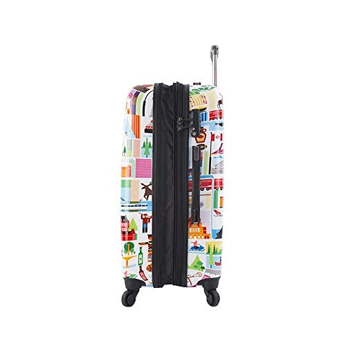 Details: Enjoy some of Canada's most famous images with this hardside suitcase. The spinner wheels let you move around tight corners easily, and the handle retracts to save space. Fernando FVT Spinners are incredibly lightweight 360-degree Spinner Wheels Spacious main compartment fully lined Built-in TSA lock Internal Handle System made from lightweight aluminum Zippered expansion system allowing for an extra 20 percent in packing capacity Fully lined interior and buckled divider with mesh pocket Also available in a 3 pc set 26 inches high x 17 inches long x 11.5 inches wideWeighs 9.3 pounds Type: Fashion, Hardsided, Rolling Product Features: Lined Material: Polycarbonate Pattern: Graphic, Signature Exterior Pocket: 0 Interior Pocket: 2 Feature: Expandable, Locking, Spinner Exact Color: Multi-color Color: MultiWARNING: Attention California residents: This product can expose you to Bisphenol A (BPA), which is known to the State of California to cause birth defects or other reproductive harm. www.P65Warnings.ca.gov