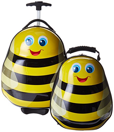 Details: The travel tots 2Pc. Kids luggage & backpack set is the perfect travel companion for your little ones. The travel tots collection was created by Heys with the unique characteristics of children in mind, incorporating several design features that benefit children. Available in 8 different animal prints (bee, Ladybug, parrot, Penguin, emperor Penguin, panda, elephant, and owl) each piece has been printed with colorful and vibrant artwork adding loads of fun to traveling for the kids and the entire family. The luggage print is protected by a layer of clear coat which also gives it a beautiful Glossy shine. The design of this case also allows the wheels to protrude out keeping the case elevated preventing the bottom of the luggage from touching the ground. With the luggage only weighing in at a mere 3.5 lbs., children can wheel these fun cases around, as they also feature our inline skate wheels that make rolling even smoother. Both the luggage and backpack piece have zipper closure system, when opened reveals a beautifully lined interior. The travel tots luggage is carry-on approved.