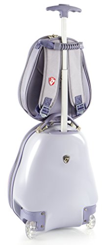 The luggage print is protected by a layer of clear coat which also gives it a beautiful Glossy shine. The design of this case also allows the wheels to protrude out keeping the case elevated preventing the bottom of the luggage from touching the ground. With the luggage only weighing in at a mere 3.5 lbs., children can wheel these fun cases around, as they also feature our inline skate wheels that make rolling even smoother. Both the luggage and backpack piece have zipper closure system, when opened reveals a beautifully lined interior.