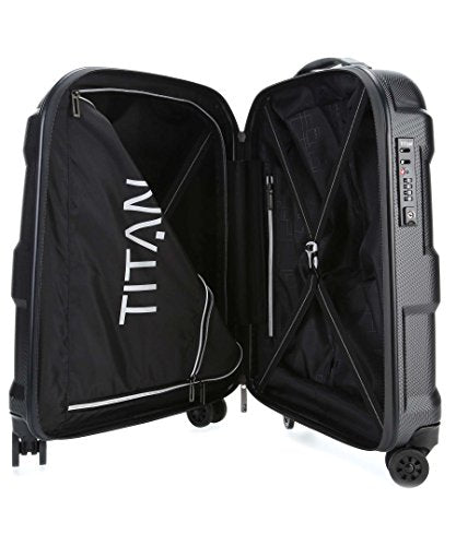 Details: The Titan X2 hard-shell spinner travel suitcase is made from 100% high grade Polycarbonate. Its Stylish Eye catching design is guaranteed to attract attention whenever you travel. It is made from a super lightweight and strong material to last you for years to come. The water-repellent flash finish and zip make it ideal for all weathers. The top functionality of the X2 Flash is enhanced by its ultra-silent double wheels, which are the largest on the market. The luggage rolls beautifully smoothly - on any surface! The TSA combination lock (like the handle) was specially developed for TITAN and is recessed into the shell. TITAN is internationally known as the think tank when it comes to suitcases in particular the mix of function and design which distinguishes the Titan travel bags and cases make the products so unique and special. An innovative highlight of the brand are the Titan hard shell cases made of 100% pure polycarbonate - one of the most resistible plastics in the world. The bags are designed and engineered in Germany to the highest standards. Titan high-quality trolley or suitcase can be a choice for several decades - or even for life time. That's why Titan provides a timeless and clean design that is not recognizable because of its decoration but because of the surfaces' structure. The collections of hard-shell trolleys by Titan vary in their front structure. Sometimes it is a smooth surface, sometimes it shows horizontal and vertical stripes. Other series cause attention by their three-dimensional patterns that remind in amour or rotors. Make a statement with the purchase of your new TITAN BAG.