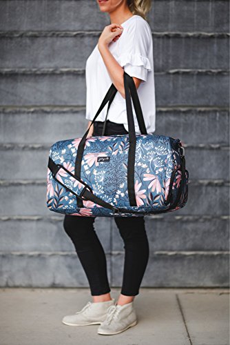 Details: Jadyn B's Weekender Duffel Bag provides the modern excursionist with exceptional durability and functionality while maintaining a feminine edge of beauty and style. The duffel features an extra large shoe pocket to effortlessly fit multiple pairs of shoes. Inside the main compartment, you'll find a large zip-enclosed nylon pocket as well as 3 separated, deep mesh pockets. On the outside, an easy access front pocket is the perfect place to keep those personal items that you'll need along your journey. The handles drop 13", allowing most women to carry the duffel on their shoulders. Or, they can use the included adjustable shoulder strap for added support and comfort. It is the perfect weekender bag to take you from home to abroad in style. Weight: 1 lb 11 oz. Dimensions: 22" x 12" x 12".
