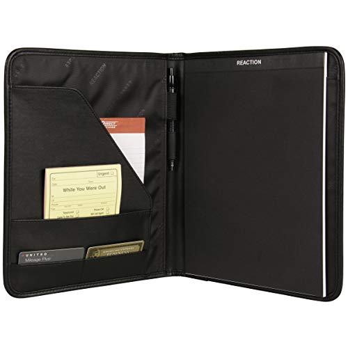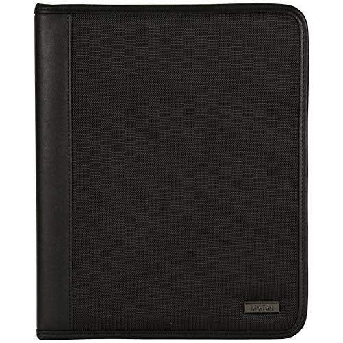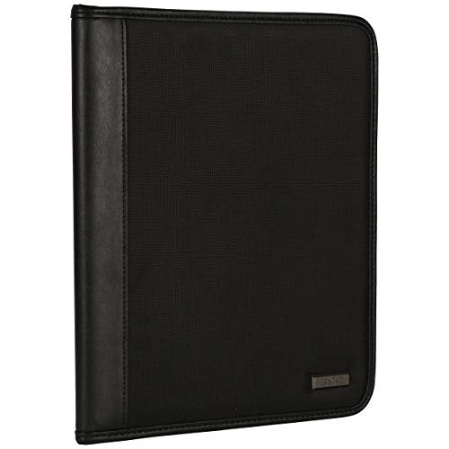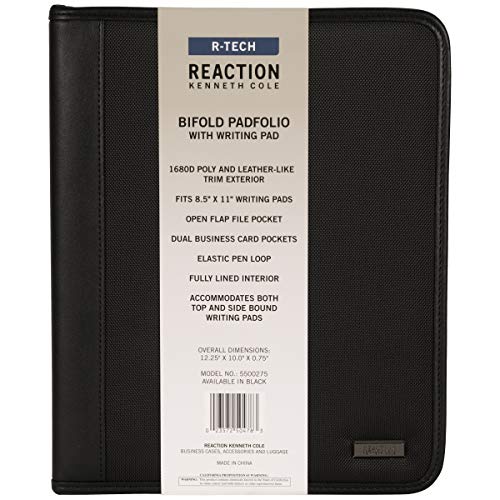Details: 1680D Polyester Open Style Bifold Writing Pad. 1680D Polyester With Vinyl Trim Exterior And Fully Lined Interior. Easy Access Open Style Construction. Left Interior File Organizer Features An Open Flap Pocket For Files, An Open Slip Pocket, Two Slots For Business Cards, And Pen Loop. Right Interior Accommodates Both Top And Side Bound Writing Pads. Lined Writing Pad Included. Item Size: 12.25" H x 10.0" W x 0.75" D. Weight: 1.65 lbs