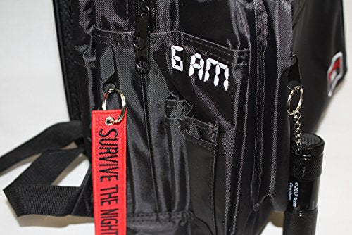 - Exterior Side Zippered Pocket with Pen Holders and 1 Side Pocket with Velcro. Features Flashlight Key Chain and 1 Zippered Pocket at Front.