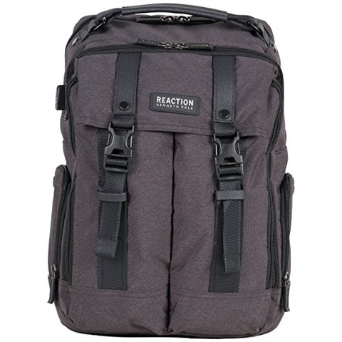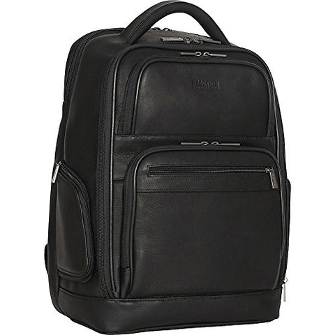 Kenneth Cole On Track Pack Vegan Leather 15.6” Laptop & Tablet Bookbag Anti-Theft RFID Backpack for School, Work, & Travel, Black, Laptop