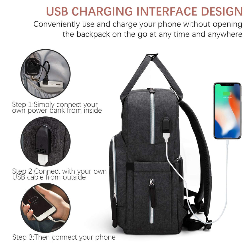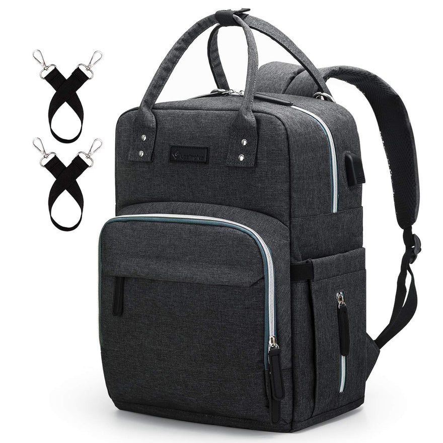 • Practical Diaper Bag Backpack with USB Charging Port - This is a nappy bag full of details designed for moments when you are out with your baby. Reach out single-handed to side slot for baby wipes, put your cellphone or wallet into the anti-thief pocket in the back; attach the diaper bag to a pram with 2 straps included in the package. We also add USB charging port and cable , so that you can use&charge your cellphone conveniently.