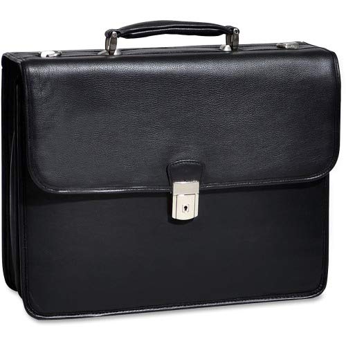 Details: Clean, front flap-over design with a secure clasp. Front section with an interior organizer for pens, business cards and small devices. Main compartment features dual secure zippers, space for files, built-in padded laptop sleeve and dual small accessory pockets. Quick, accessible back pocket for documents. Adjustable, non-slip, shock absorbing shoulder strap alleviates body strain. Main compartment features a built-in padded laptop sleeve that fits and protects most laptops up to 15.4" in screen size.