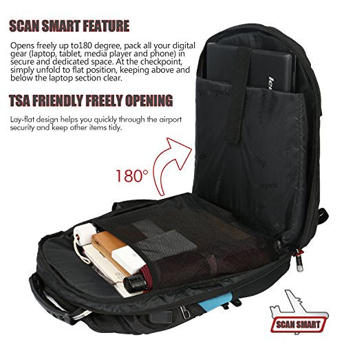 - TSA Scansmart & Built-in External USB Port: At the checkpoint, simply unfolds to flat position, keeping above and below the laptop section clear offering a quick access of the scanner without removing your laptop. Side exterior usb port provides convenient charging of your cellphone,laptop and other electronic devices without opening up the backpack