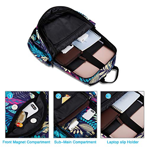 - Outdoor hiking travel size of 16.9 by 11.5 by 7.5 inch that carries everything you need with these 24 litres light backpacks. This blue leaves patterned stylish is easy to recon and also fit all your book, pencil case, notebooks, laptop, mobile, keys, pencil case, wallet purses and cosmetic purse bag in the knapsack for any kids, teen girls, ladies and womens.