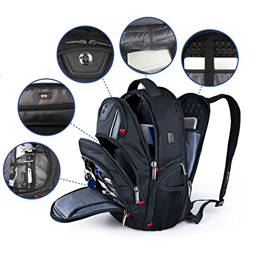 Laptop Backpack,Swissdigital Busniess Travel Polyester Backpack With Usb Charging Port And Rfid