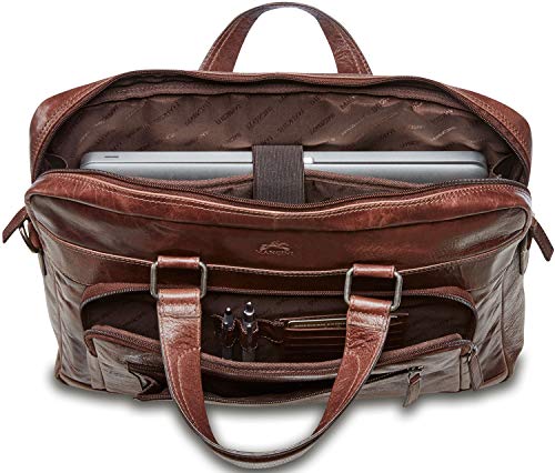 Details: Our BRIDGE Collection features elegant & durable creations that showcase the natural characteristics of the finest quality vegetable tan leather. This collection features briefcases with padded compartments to protect your tablet and laptop as well as RFID secure wallets. This functional collection will fulfill all your business and personal needs with style. This briefcase features a main zippered compartment with separate tablet and laptop padded sleeves to keep your devices secure and protected. A front organizer to keep small personal items at your fingertips. The rear is equipped with a zippered pocket and an attach-a-bag strap to piggy-back the briefcase on luggage.
