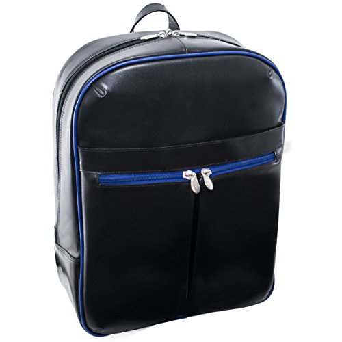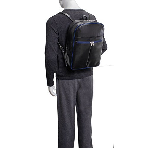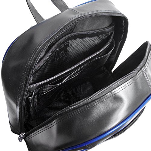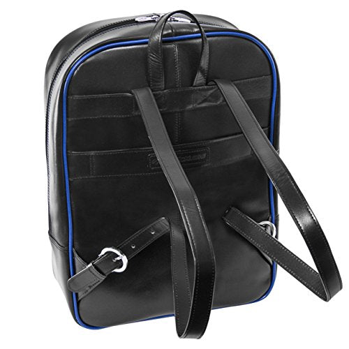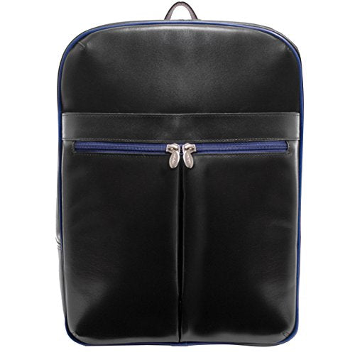 McKlein, L Series, Avalon, Top Grain Cowhide Leather, 15" Leather Laptop Slim Backpack, Blk/Navy Trim (87885)