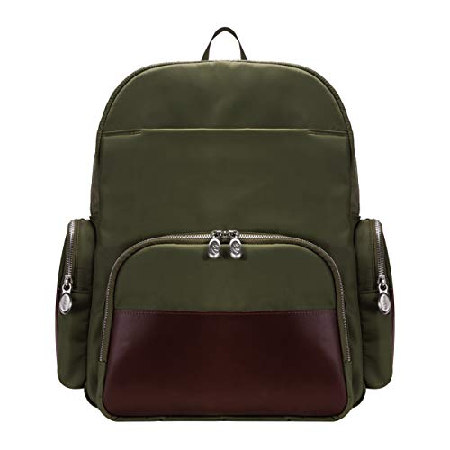 McKlein, N Series, Cumberland, Nano Tech-Light Nylon with Leather Trim, 17" Nylon Dual Compartment Laptop Backpack, Green (18361)