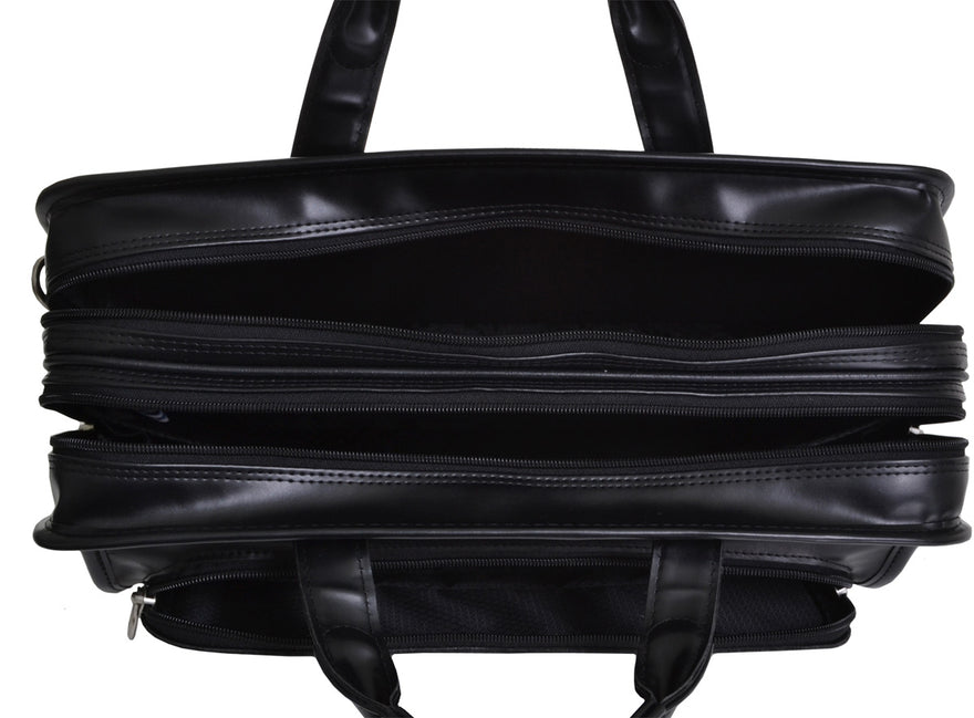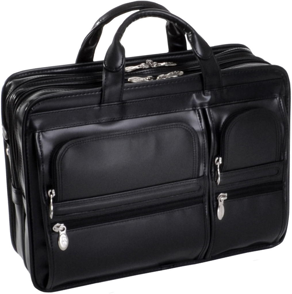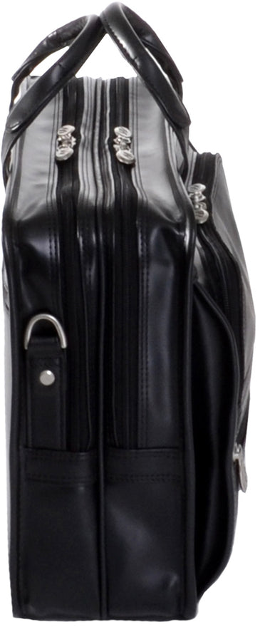 Front organizer pocket for media devices, cell phone, business cards, key chain holder and pens. Front zipper pocket for small miscellaneous items. Front compartment with accordion file for all your document needs and two small pockets. Back compartment padded to protect most laptops up to 15" in size. Smart Zipper Attachment allows piggy-backing on extended handles of other rolling cases amp; luggage.