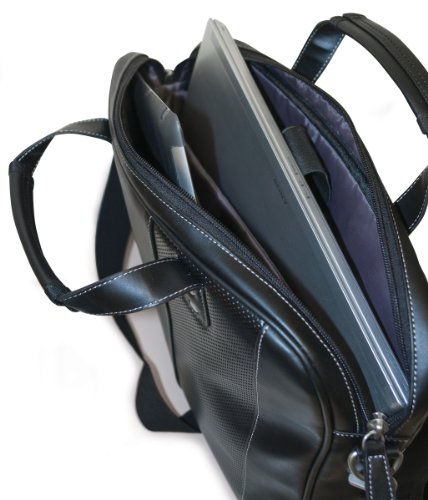 Details: Mobile Edge - Slimline Ultrabook Briefcase - 14.1"/15" Mac - Black w/White, Separate padded pockets for your Ultrabook and iPad/Tablet, Stylish Koskin exterior with contrast stitching and accent panels, Separate padded pockets for your Ultrabook and iPad/Tablet, Stylish Koskin exterior with contrast stitching and accent panels
