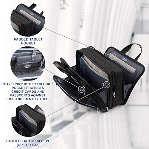 - Padded laptop (up to 15.6") and tablet sleeves protect electronics. Rfid-blocking pocket keeps credit cards and passports protected against loss and identity theft. Organizational pockets store power cords, powerbanks and other essentials for daily use