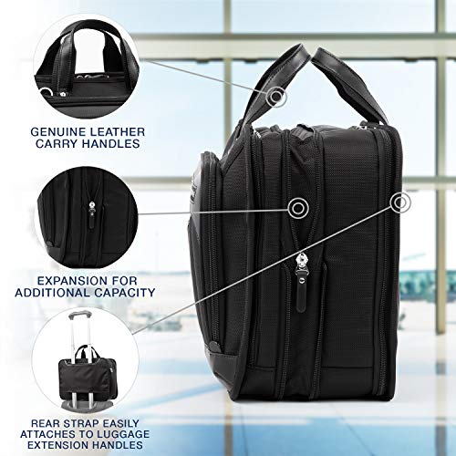 Details: A business brief that grows with your needs. The platinum elite expandable business brief offers all the organization and convenience you need in a traveling brief with luxurious design details that stand out with style. The convenient expansion option gives you added packing capacity when needed for storing files, electronics or even a light jacket. Genuine leather carry handles feel as good as they look, while the high-density nylon fabric resists stains and abrasions to stay looking sharp. Additional features include built-in organizers, separate laptop and tablet sleeves and an RFID-blocking pocket that keeps credit cards and passports protected against loss and identity theft. As always, this bag is backed by our built for a lifetime limited worry free warranty.