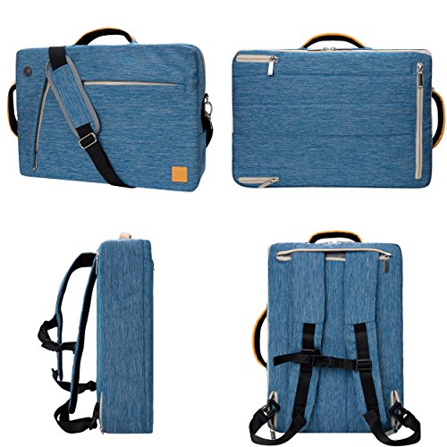 Details: The VanGoddy Slate is a 3-in-1 hybrid laptop bag that offers a messenger, a backpack, and a briefcase tote all in one. The body was designed to be slim and modern but most of all highly productive. The exterior features canvas like nylon that has the look of washed denim giving it a modern and trendy appearance. The frontal exterior features two zippered pockets one of which is appointed with an audio port for enjoying music on the go. The rear features a zippered pocket that contains the backpack straps but can also be used as an additional storage compartment. The main zippered compartment features a dedicated padded laptop compartment with closure. Also found in the interior main compartment is 2 large mesh pockets ideal for cables and cords, a large zippered pocket for keeping items separate and secure, and an additional slip pocket located near the laptop compartment. This bag can be worn comfortable for extended periods of time thanks to padded mesh shoulder straps, padded mesh handles, and padded messenger strap.