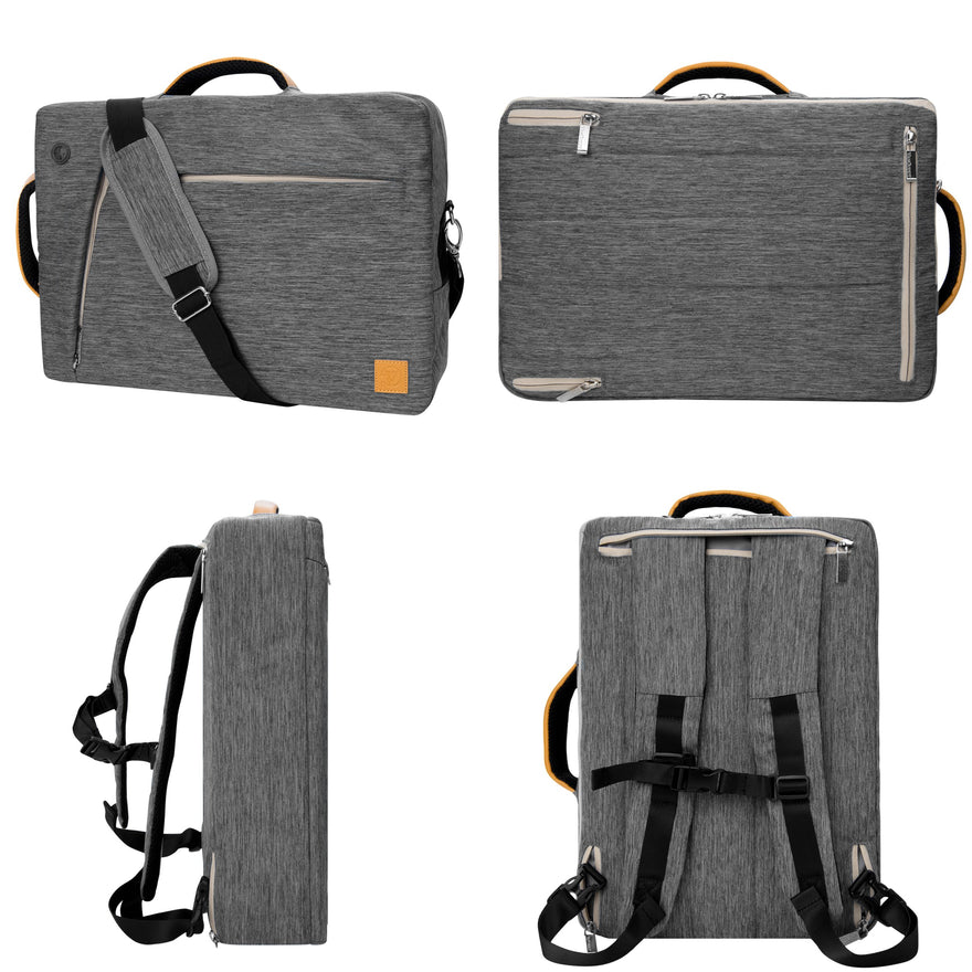 - 3-in-1 hybrid designed compact and slim laptop bag transforms into a backpack, messenger bag, and briefcase tote; this modern multi-function laptop carrier provides all the necessary options for comfortable and convenient travel