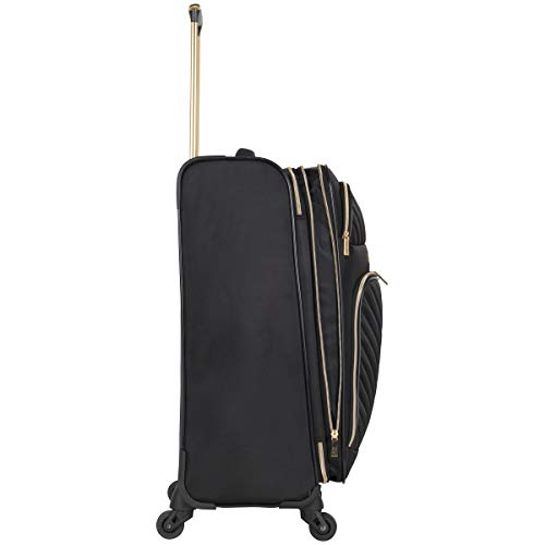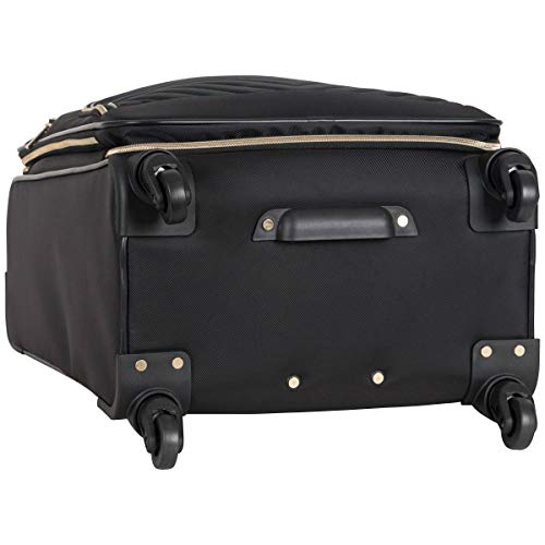 Details: 4-Wheel spinners allow smooth 360-degree rotation on uprights Lightweight construction Poly-twill with quilted chevron exterior and fully lined interior Front exterior features a small zipper pocket for easily accessible items and a large gusseted zipper pocket main compartment features a side zipper pocket and secure garment restraints to hold belongings in place and interior lid section features a full-length mesh zipper pocket Top and side grab handle for easy lifting Rear exterior includes a business card size I.D. Pocket 20" Dimensions: 22" H x 13" L x 9"-10.5" D; Weight: 6.95 lbs 24" Dimensions: 27" H x 15" L x 10"-11.5"; weight: 8.2 lbs 28" Dimensions: 29.5" H x 16" L x 11"-12.5" D; Weight: 9.8 lbs includes a 10 year limited manufacture warranty
