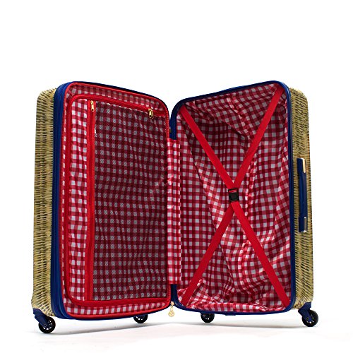 Details: Our Provence Picnic Luggage is a whimsical and fun take on a classic wicker basket. The hard outer shell is a wicker print on our durable shiny sided cases and the lining is a red and a white classic gingham... yes we are faux real and it is fabulous! Keep your travel essentials organized in the spacious main compartment, and wheel around effortlessly on wheels with a gold-finished telescoping handle. We added our signature socialite stripe to finish the look in a way that is unmistakably Margaret Josephs and Macbeth Collection. Tres Chic! Macbeth Collection is world renowned for putting the "fun into function" and this luggage is no exception. Margaret Josephs is a true jet-set gypsy and loves to travel. Each of the Macbeth Collection luggage pieces has been designed to be the ultimate travel companion.