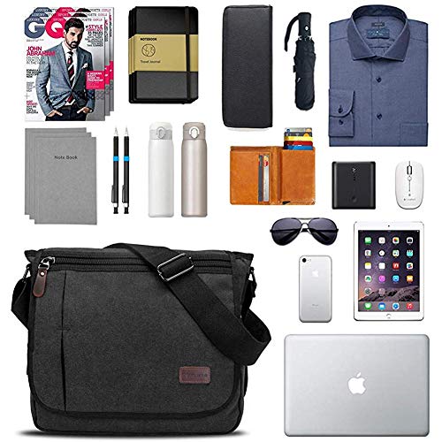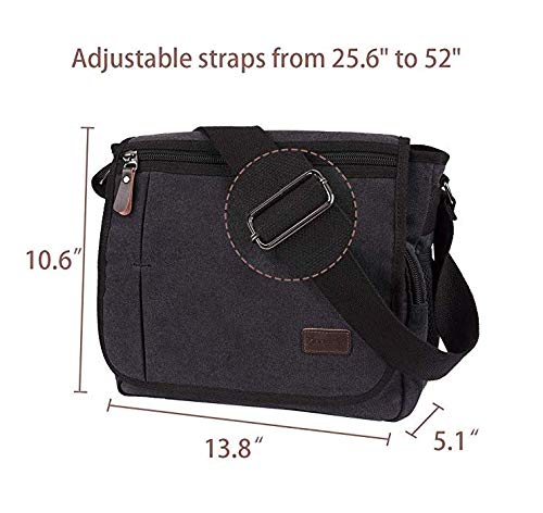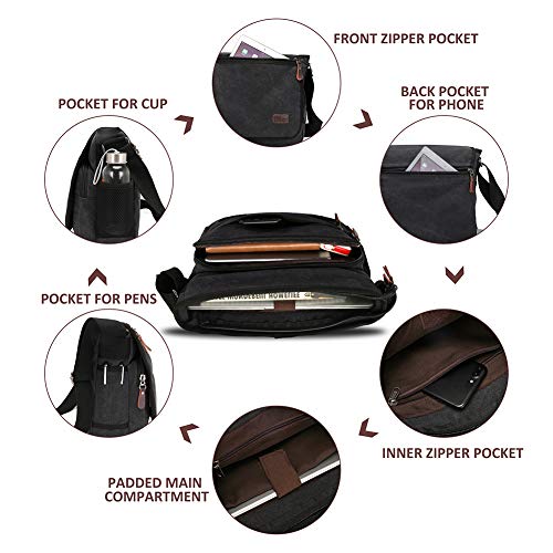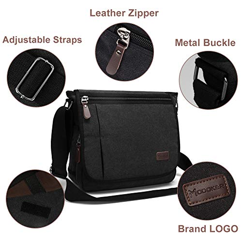 Modoker Messenger Bag for Men Women, 13 Inches Laptop Satchel Bags, Canvas Shoulder Bag with Bottle Pocket, Black