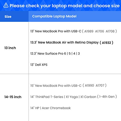 - Maximum fit model size: 11.97 x 8.36 in; Perfect fit 2018 New MacBook Air - 13.3" Retina Display (A1932) | 13" New MacBook Pro with USB-C Late 2016 - 2018 (A1989 A1706 A1708) | 12.3" Surface Pro 5 / 4 / 3; Also compatible with 13" Dell XPS
