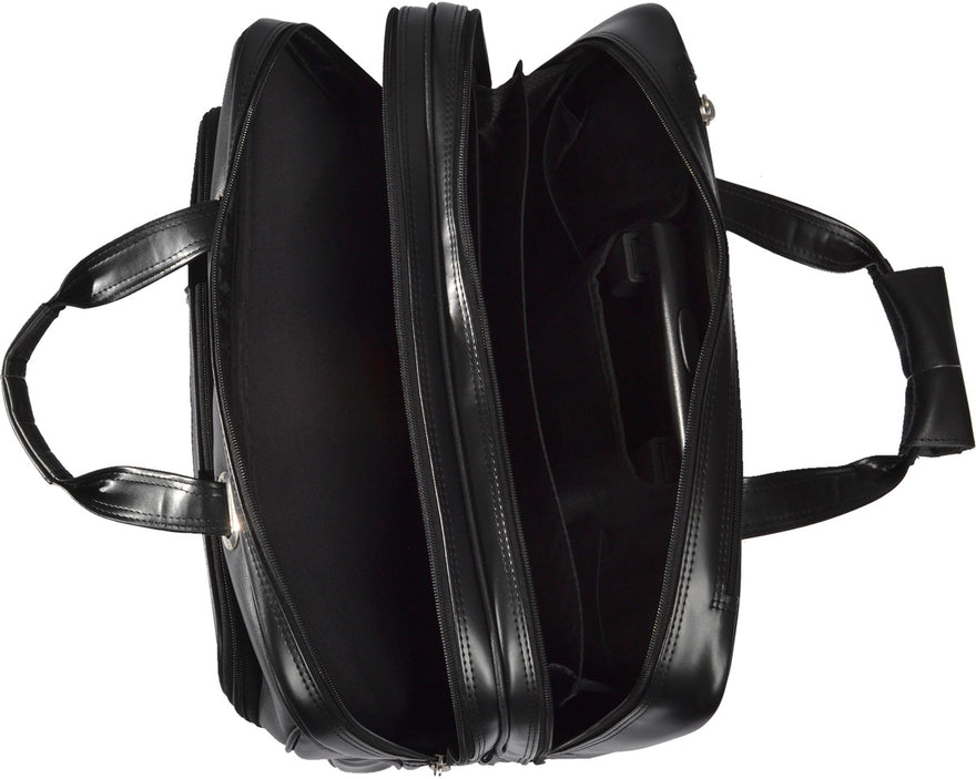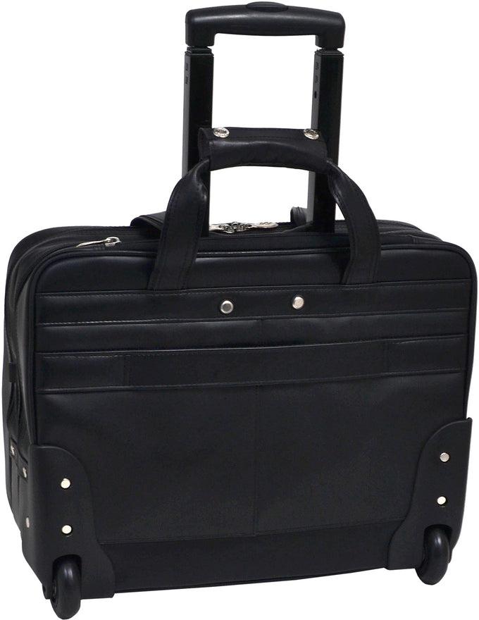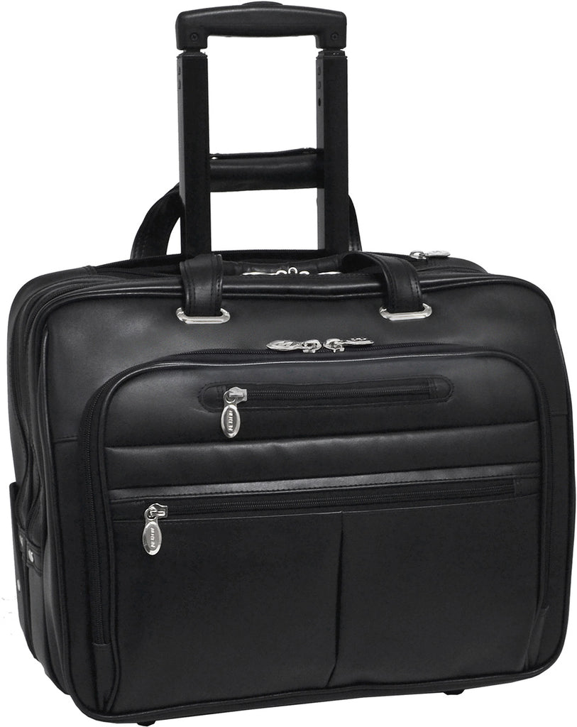 Front zipper pockets provide storage space for small miscellaneous items. Front organizer with storage space for media devices, cell phone, business cards, key holder and pens. Front compartment features file divider for documents. Built-in high-density laptop compartment that protects up to 17" in size laptops. Dual Laptop Protection System uses a high-tech ABS honeycomb frame to protect laptop from exterior impact and a built-in padded laptop sleeve with high-density foam to help absorb shock and prevent moisture intake. Smart Attachment Strap allows transport on extended handles of other rolling cases and luggage.