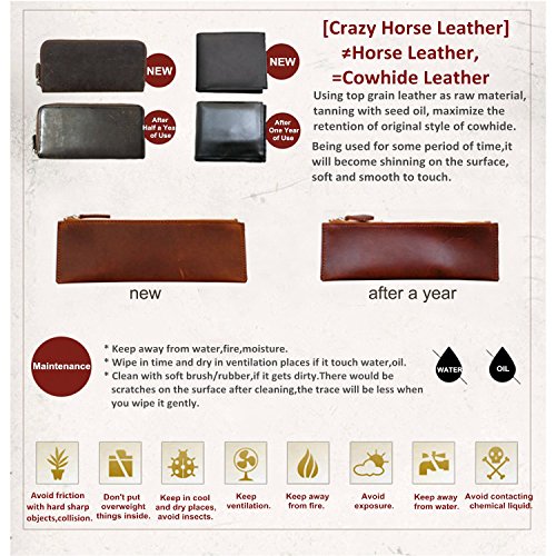 4. Since the manufacturing process of Crazy Horse Brand bull leather, the color maybe a little bit different of each bag, please be aware of this and confirm with our customer service before you purchase.