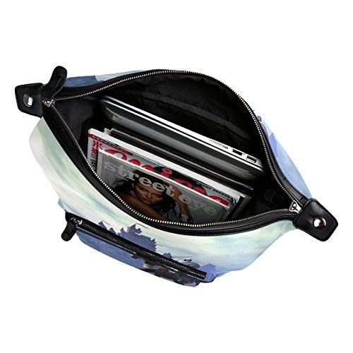 Large enough to hold many random items, books, slim laptops and so on 类型:涤纶+皮革 多面印花 包高:35cm 包宽:34cm 包底宽:17cm 肩带可调节最长:96cm 涤纶+皮革材质,DIY个性定制图案,轻便、耐用、时尚。 一个主容量袋,2个侧袋,1个前面拉链口袋,内里2个小收纳格、1个拉链暗袋,多口袋设计,容量适中,放取便捷。 可收纳笔记本电脑和日常随身物品,细节性卡扣设计,多功能不失时尚美观。 采用双拉链设计,手提采用皮革材质,手感舒适。可调节肩带。 温馨提示:为了确保最高质量的打印,请注意,该产品的建议上传的图像大小为像素(L x W):4000x 4000或更高
