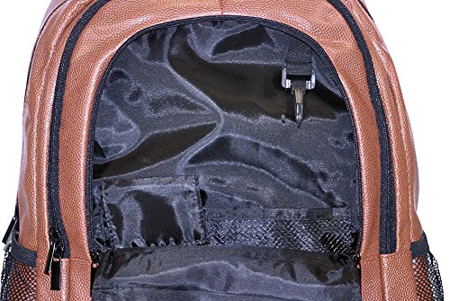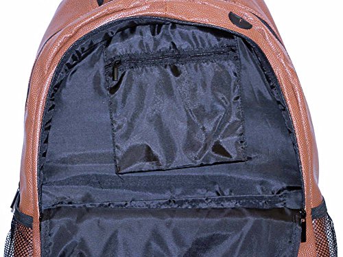 Details: Show up to the stadium in style sporting this football leather backpack. It looks and feels just like a new football because it's made out of the same football material. If you love the game then sport the only backpack made from actual football leather. But it's also so much more it has three zipping compartments and a padded laptop case on the inside. There is a pocket for your cell phone a snap to hold your keys and pockets for pens or other small items. Travel from the bus to field in style. These backpacks are great for school, travel, sporting events or a quick weekend getaway.