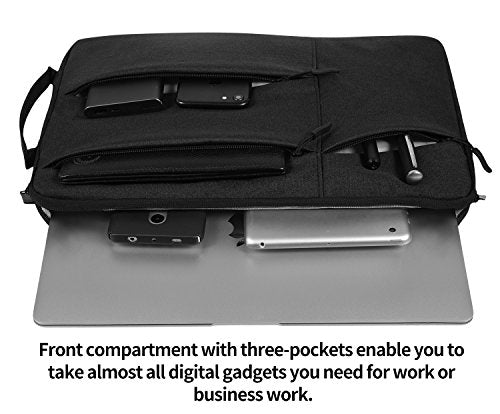 - FRONT THREE POCKETS STORAGE & DURABLE ZIPPER - Three pockets in front, enough space to keeping, mouse, cable, cellphone, memory cards, external hard drive, pens etc. Top-loading zipper on the sleeve glides smoothly and allows convenient access to your laptop