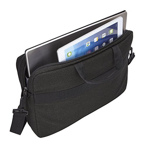 Details: Features: Separate, thickly padded 15.6" laptop compartment, Extra storage compartment for accessories, cables and charger, Padded carry handles for comfortable transportation, Removable shoulder strap adjusts for a custom fit, Luggage strap securely attaches slim case to most rolling luggage, Dedicated iPad or 10.1” tablet compartment, Multiple zippered pockets store accessories, Durable polyester material withstands your ever-changing schedule.