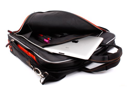 Details: DURAGADGET's all new stylish briefcase bag with plenty of storage for all your travel needs, finished in black and orange, with tough dual zips for easy access.